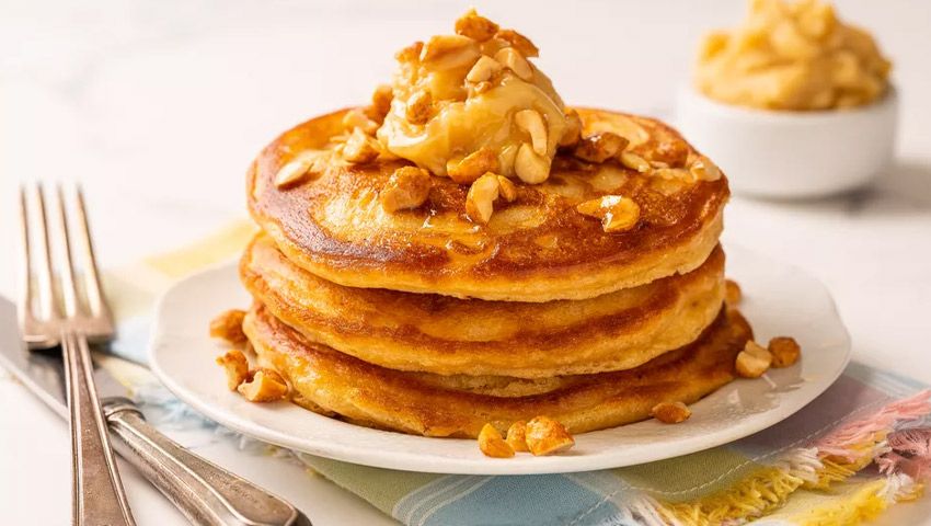 پنکیک بادام زمینی برای صبحانه یک وعده و طعم بی نظیر هست البته اگه هم پنکیک دوست دارید و هم طعم بادام زمینی این طرز تهیه براتون بهترینه چون همراه قهوه یا یک لیوان شیر یک صبحانه کامل میشه که نمیشه ازش گذشت.