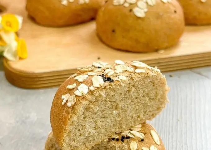 پف خمیر را بعد از حجم گرفتن بگیرید سپس به چونه های ۱۰۰ گرمی تقسیم کنید سپس چونه ها را در سینی فر قرار دهید و کمی با کف دست پهن کنید و روی آن جو پرک یا تخم آفتاب گردان بریزید و در فر از قبل گرم شده به مدت ۲۵ الی ۳۰ دقیقه در دمای ۱۸۰ قرار دهید تا نان پخته شود. نوش جان