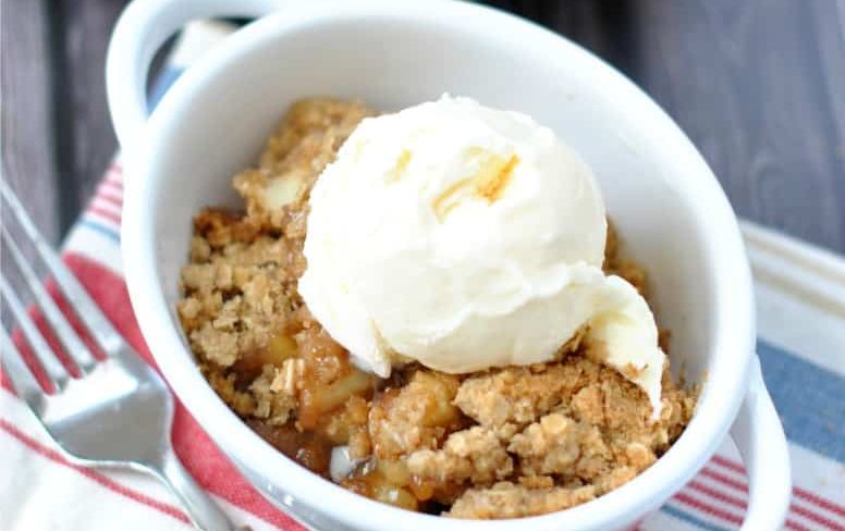 به مدت 30 دقیقه یا تا موقعی که سیب ها نرم شده باشند و روی آن طلایی شده باشه در فر بذارید. دسر سیب برشته رو گرم سرو کنید و لذت ببرید می تونید از خامه یا یک اسکوپ بستنی هم برای سرو استفاده کنید.