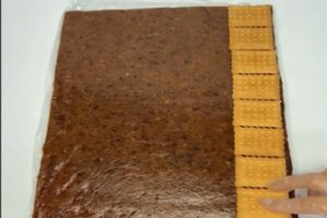 در دومین مرحله از طرز تهیه شیرینی خرمایی با بیسکویت پتیبور باید یک پلاستیک فریزر تمیز را کامل باز کنید. دو لایه آن را با کمی روغن چرب کنید. مخلوط خرما را روی آن پخش کنید. برای جلوگیری از سوختن دستهایتان میتوانید، کمی برای خنک شدن به آن زمان دهید. خرما را با کمک وردنه نازک و صاف کنید. اضافههای آن را بگیرید. اگر رولت خرمای زیباتری میخواهید باید آن را به شکل مستطیل دربیاورید. در ادامه بیسکوییتهای بتیپور را به صورت لایهلایه روی خرما بچینید و آن را به آرامی رول کنید. رولت را در کنجد بغلتانید. در آخر آن را برای پنج ساعت در یخچال بگذارید تا خود را بگیرد.
