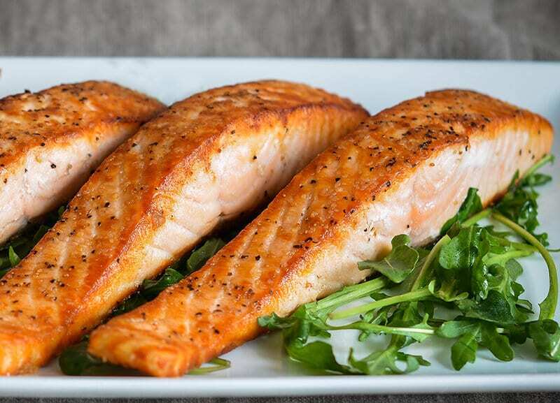 فیله ماهی قزل سالمون را با کمی سبزیجات سرو کنید و نوش جان بفرمایید.