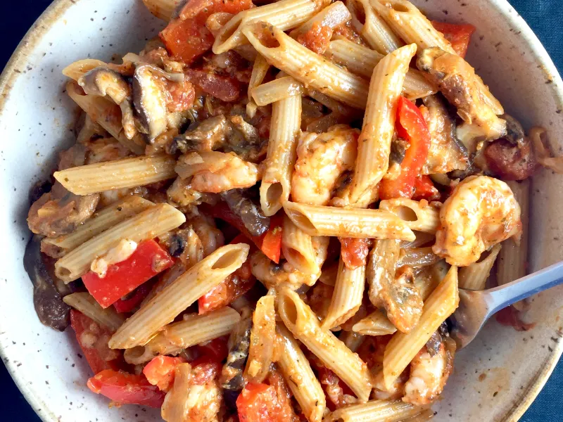 طرز تهیه پاستا با میگو و قارچ و پنیر ایتالیایی خوشمزه و آسان