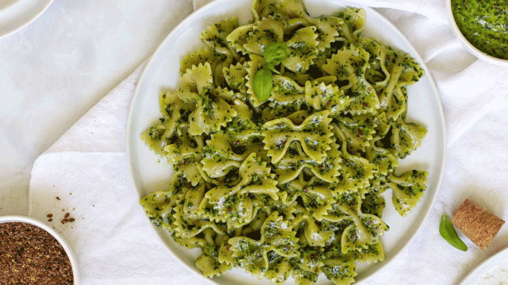 در آخرین مرحله از طرز تهیه پاستا پستو ساده پاستا را به یک کاسه منتقل کنید تا حرارت غیر ضروری به پستو اضافه نشود چون ریحان وقتی که داغ میشود سیاه میشود. بعد سس پستو را روی پاستا بریزید و هم بزنید تا به طور یکنواخت پوشش داده شود. کمی پنیر پارمزان تازه بپاشید و سرو کنید. نوش جان!