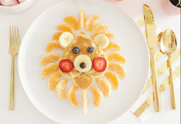 طرز تهیه پنکیک موز به شکل شیر برای صبحانه کودک