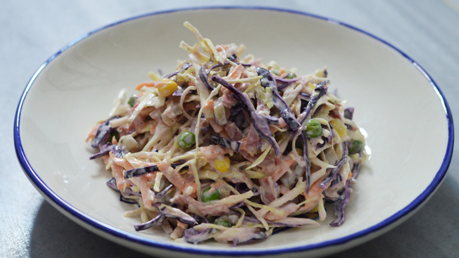 - این سالاد کنار مرغ سوخاری خیلی طرفدار دارد و در رستورانها هم سرو میشود، میتوانید آن را درست کنید و کنار مرغ سوخاری سرو کنید.